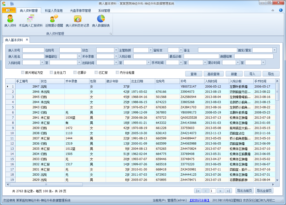 軟件支持對病人基本情況、手術情況、隨訪情況等方面信息的管理,根據不同的科室的數據管理要求進行不同的定制,軟件界面大方美觀,
